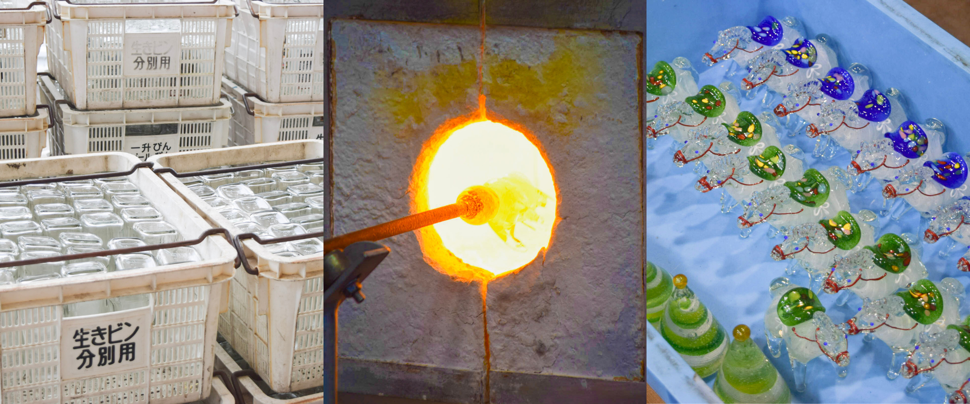 ごみとして集めた空きびんは、どのような工程を経て、ガラス工芸品として生まれ変わるのでしょうか。